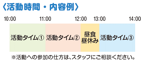 ・火・金曜日にスタッフや仲間と様々な活動に取り組みます。