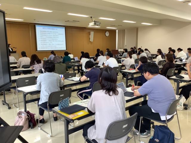 令和7年9月12日(金)に、放送大学 客員教授 堀川 照代 氏を講師に、令和7年度「図書館教育研修」を開催しました。講義・演習「学校図書館活用で「情報活用能力」と「読む力」を育む」を通して、図書館の役割である「読書センター」、「学習センター」及び「情報センター」について理解を深めました。また、こどもの様々なニーズに対応するためのツールとして実際に「リーディングトラッカー」を手にすることで、「今読むべき部分が視覚的、感覚的にくっきりする」という効果を体験し、ツールの活用等について考える機会となりました。グループ協議では図書館祭りやキャラクター、クイズ等各学校の取組について情報交換ができました。