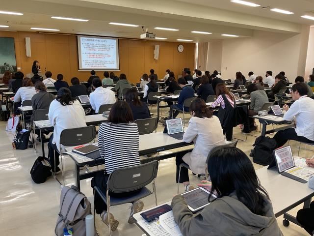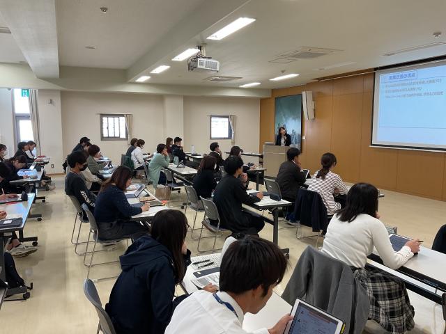 はじめに本市教育委員会英語教育推進室による説明により、本市英語教育の現状と取組について確認をしました。その後、文部科学省初等中等教育局外国語教育推進室 教科調査官、国立教育政策研究所教育課程研究センター研究開発部 教育課程調査官 早川 優子 氏による講義・演習「児童の英語学習への意欲が高まる楽しい授業づくりについて~個別最適な学び・協働的な学びの視点を踏まえて~」を通し、言語活動の充実に向けた、デジタル学習基盤の効果的な活用について理解を深めました。