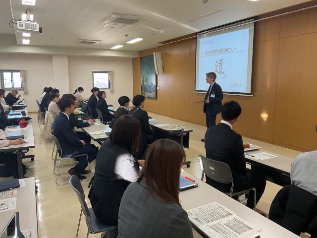 令和8年1月22日(木)に令和7年度第3回「3年目研修」を開催しました。前半のスパンでは各分科会において、受講者が自己課題の解決に向けて今年度取り組んだ実践について協議しました。グループ内の協議では、各担当学年等に分かれ、各自が作成した研究報告書を基に実践報告を行い、その後の質疑を通して研究の成果と課題について理解を深めました。最後のスパンでは、初任者研修から3年間の校外研修のしめくくりとして本教育センター所長より「大分の教育を担う皆さんへ」と題し、講話が行われました。